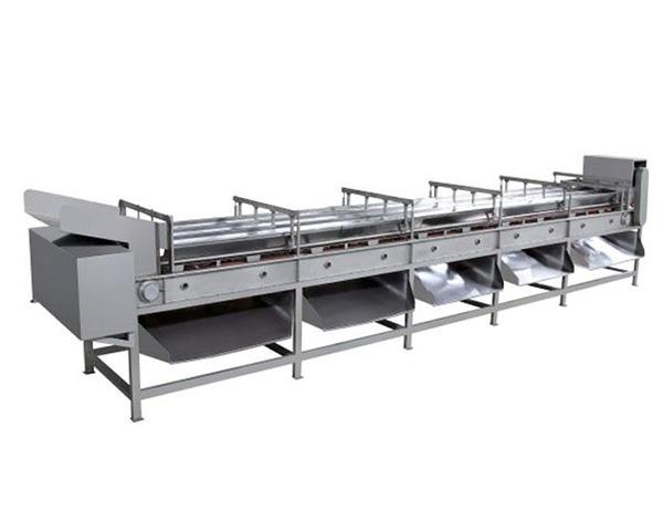 當(dāng)前位置:首頁 > 產(chǎn)品中心 > 挑選、分級系列 > FJJ型水果分級機 簡介— 該設(shè)備是利用“〇”型輸送帶與分級傳動軸之間的間隙大小來達(dá)到分級的目的。該機結(jié)構(gòu)新穎,分級精度高,產(chǎn)能大, 對水果表面無損傷等特點。適用于蘋果、梨、橙子等圓果類的分級。