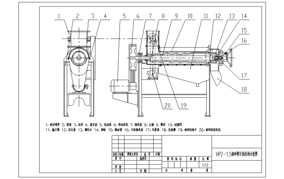 2、壓榨螺旋直徑:Φ175毫米。破碎機轉(zhuǎn)子直徑Φ190毫米