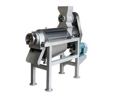 本設(shè)備由破碎機(jī)和榨汁機(jī)兩部分組成。主要構(gòu)件是進(jìn)料斗上安裝破碎裝置(由進(jìn)料斗、機(jī)身、主軸、飛刀、底刀、軸承座、電機(jī)等組成。)工作時(shí)電機(jī)經(jīng)一對(duì)皮帶輪等速驅(qū)動(dòng)主軸旋轉(zhuǎn),物料被高速旋轉(zhuǎn)的飛刀切碎,由于離心力的作用,直接進(jìn)入螺旋榨汁系統(tǒng),以便提高榨汁效果。螺旋榨汁的主要構(gòu)件是螺旋,螺旋沿著料渣出口方向底徑逐漸加大而螺距逐漸減少,當(dāng)物料被螺旋推進(jìn)時(shí),因螺旋腔體積縮小,形成對(duì)物料的壓榨。螺旋主軸的轉(zhuǎn)動(dòng)方向從進(jìn)料斗向渣槽方向看去,為順時(shí)針?lè)较?。原料加入進(jìn)料斗中,在螺旋的推進(jìn)下受壓,其壓榨的汁液通過(guò)過(guò)濾網(wǎng)流入底部的盛汁器,而廢料則通過(guò)螺旋及調(diào)壓的錐形部分之間形成的環(huán)狀空隙排出,調(diào)壓頭沿軸向的移動(dòng)可調(diào)整空隙的大小,調(diào)整出汁率。